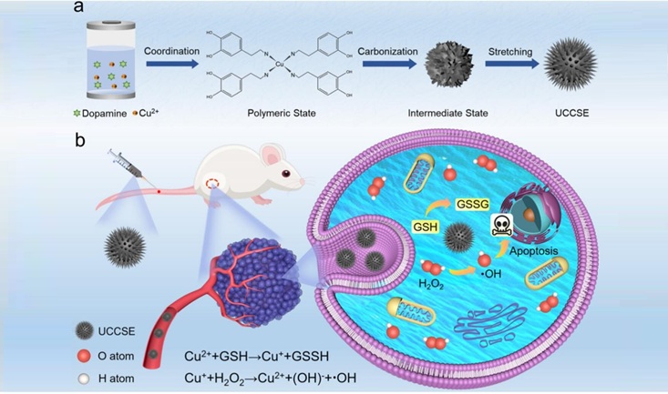 Recently, a research team led by Prof. WANG Hui from the Hefei Institutes of Physical Science of the Chinese Academy of Sciences, in collaboration with Prof. ZHAO Yanli' s group from Nanyang Technological University, constructed a novel urchin-like copper single-atom nanozyme (UCCSE) and revealed that needle length plays a critical role in enhancing cellular uptake and chemodynamic tumor therapy efficiency.