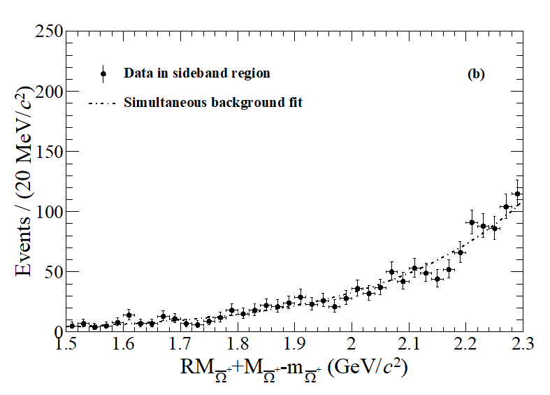 Figure 1: Recoil mass spectrum of Ωbar+/Ω- in the signal region (a) and sideband region (b) in the data.