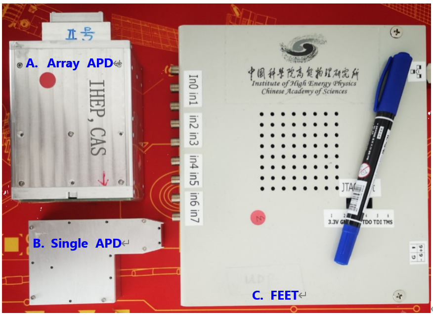 HEPS-ID33 中等能量分辨单色器 纳秒时间分辨探测器—李秋菊纳秒时间分辨探测器是一种单光子、高动态范围、纳秒时间分辨,低噪声、适合于硬X射线探测的新型探测器。ID33核共振散射线站采用雪崩型光电二极管(APD),通过特殊的极低噪声前放电路设计,采用时间戳计时技术,能够实现对核散射信号的采集。这款探测器由高能主研制。分别由阵列型、单元型两种类别。其中阵列型APD探测器具有2x4个小APD单元组成,每个单元面积是3x5mm2。单元型APD探测器面积10x10mm2. 八通道读出电子学插件:集成8路独立TDC(时间分辨率1 ns FWHM,死时间<10 ns),通过FPGA实现多通道符合测量,数据吞吐率≥1 MHz。系统整体时间抖动≤200 ps(RMS)。