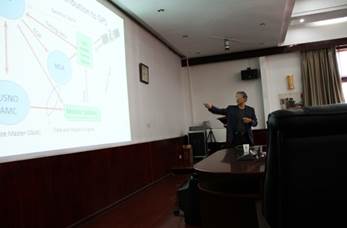2014年8月25日至26日,美国海军天文台首席科学家Demetrios Matsakis博士应邀来国家授时中心访问并开展学术交流,并做了“GPS Time and Time Transfer”、 “Timekeeping and time system of GPS”以及“Timekeeping and Time Transfer in USNO”的专题报告,报告由时间频率基准实验室副研究员袁海波主持,中心40余名科研人员和研究生听取报告并参加了学术交流。