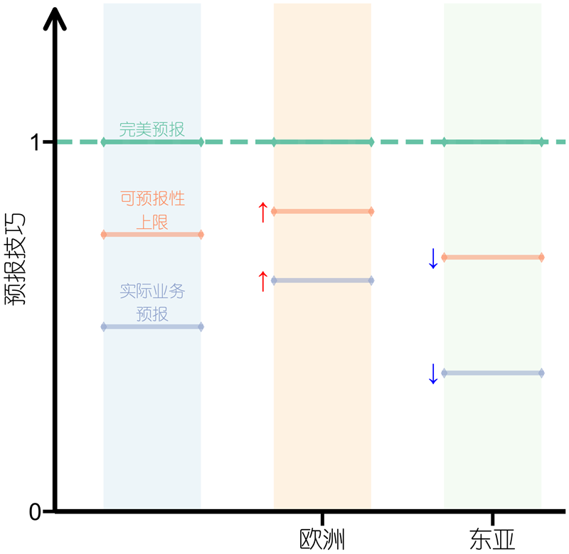 图2 欧洲较东亚热浪预报技巧区域差异性成因机制图
