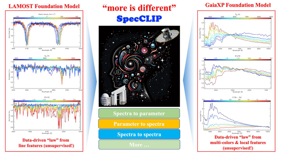 在人工智能大模型迅速发展的今天,天文学也正在迎来一场新的技术变革。近日,由中国科研团队主导完成的研究成果SpecCLIP人工智能模型正式发表,该工作将类似“大语言模型”的思想引入恒星光谱分析,为跨巡天数据融合和精密恒星物理参数研究提供了全新的思路。该成果也是我国团队在“天文基础模型”研究方向上的一次重要突破。