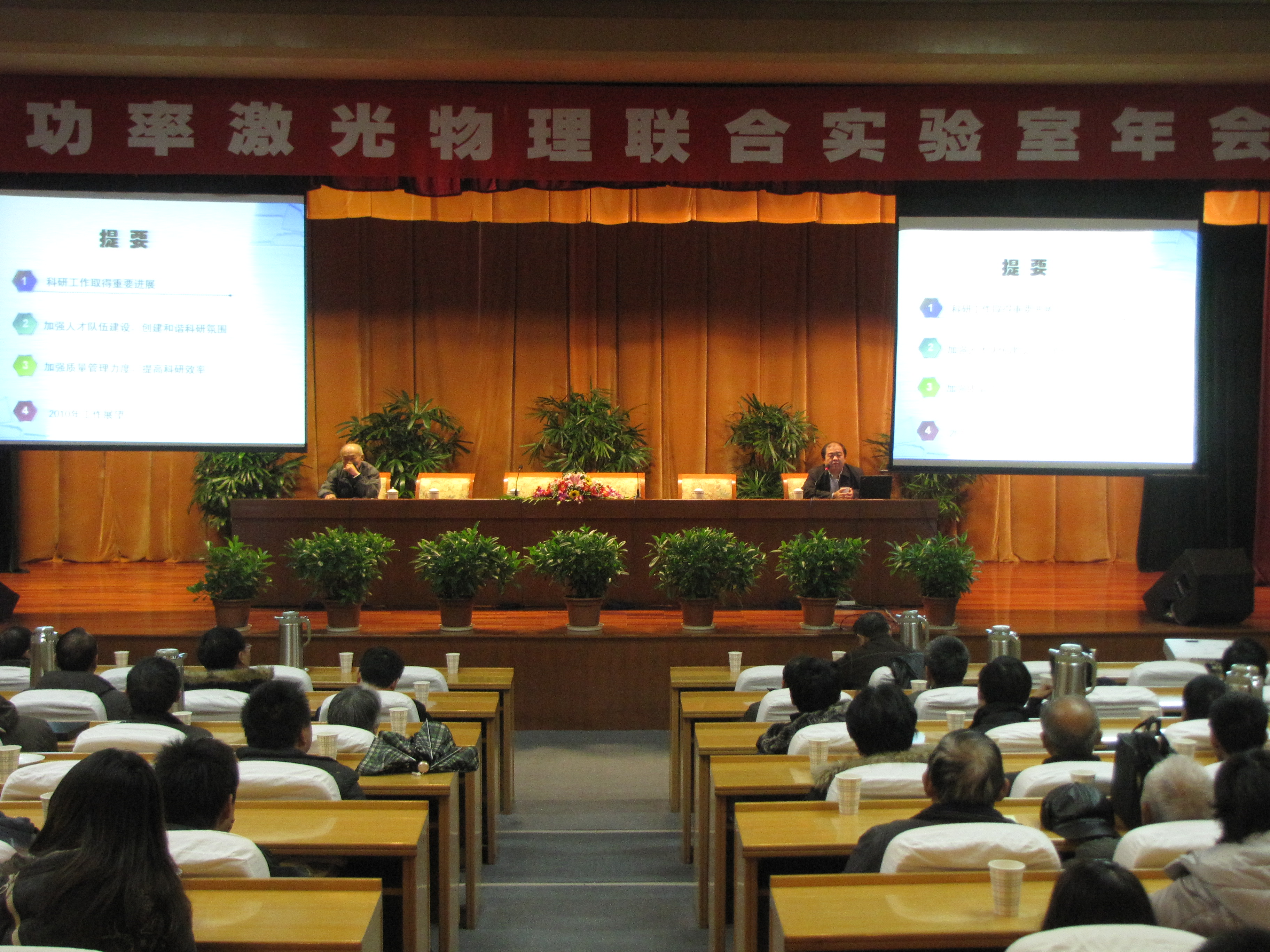 团结协作促和谐 心齐劲足图发展——联合实验室召开2010年工作年会2010年1月27日,联合实验室召开2010年工作年会,总结2009年的工作,展望2010年的发展。实验室主任朱健强研究员、王世绩院士、范滇元院士、林尊琪院士、实验室全体职工和研究生共二百余人参加了年会。年会由顾援副主任主持,朱健强主任在会上作了2009年度实验室的工作总结,2010年的工作目标和实验室未来发展的规划与展望。各课题组长分别代表本组做了十个内容丰...