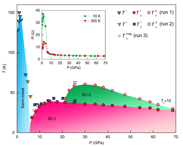 图1.单晶ZrTe5的温度-压力相图
