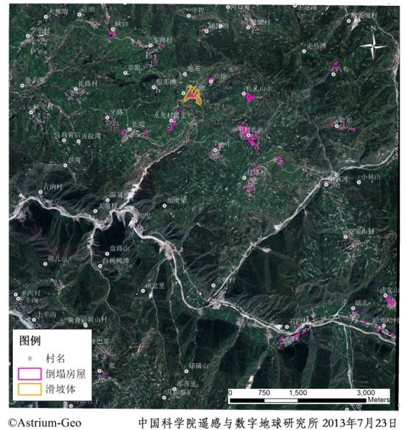在此基础上,科研人员对受灾范围和受灾人口状况进行了快速评估,并利用“实践9号”、“高分一号”、视宝公司提供的Pleiades等卫星数据以及高分辨率航空遥感数据,对地震区域房屋倒塌、滑坡地质灾害和居民临时安置点等情况进行了分析解译,并及时向国家有关部门提交分析报告。