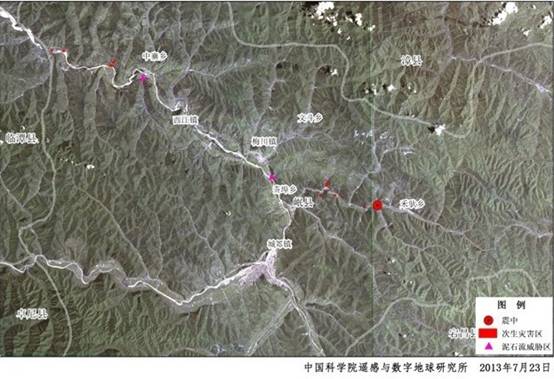 2013年7月22日,甘肃岷县漳县6.6级地震发生后,中国科学院遥感与数字地球研究所立即启动灾害应急响应,完成了SPOT-4、SPOT-5、THEOS卫星的震区历史数据生产处理,地震当天下午16:13开始实施网络共享,对于灾情评估发挥了重要的基础性作用。截至7月25日16:00,震前卫星数据下载共计5738人次,累计下载量87.79GB。与此同时,提交了THEOS、RADARSAT-2等卫星的紧急数据获取申请,并积极联系国内卫星用户单位,及时获取国内卫星数据。