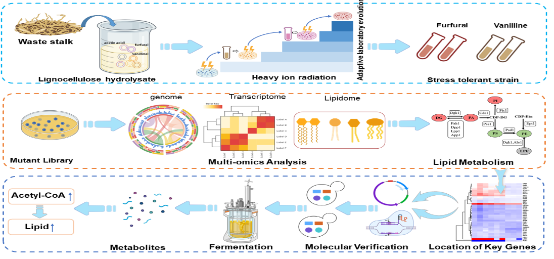 中国科学院近代物理研究所生物物理室研究团队与兰州理工大学合作,通过结合重离子辐射、适应性实验室进化(Adaptive laboratory evolution, ALE)和基因编辑等相关技术,实践了团队之前提出的关于提升重子辐射诱变育种效率和质量的研究策略。系列研究成果2024年11月前后发表在Communications Biology、Biotechnology for Biofuels and Bioproducts、Applied and Environmental Microbiology、Journal of Biotechnology等国际...