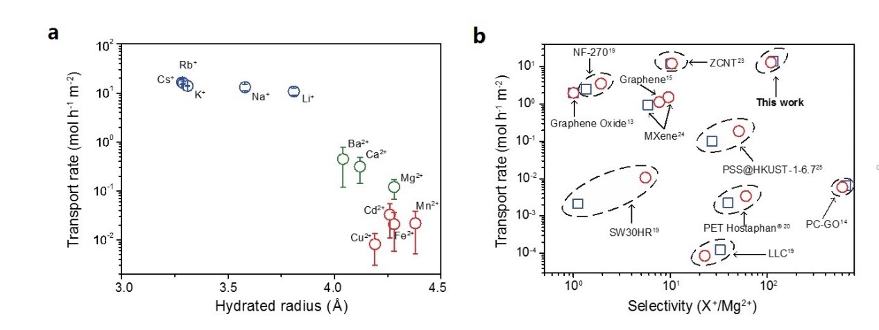 基于纳米孔道的分离膜在海水淡化和污水处理等方面具有节能和高效的巨大的潜力,但它的实际应用一直受输运和选择性矛盾的制约。北京大学核物理与核技术国家重点实验室用户利用兰州重离子加速器(HIRFL)辐照高分子膜成功制备出高密度孔径均匀的接近亚纳米尺度的核孔膜,实现了超高通量和高选择性离子输运的完美平衡,并结合分子动力学模拟揭示了其纳流体输运机制。通过优选高分子膜并利用新的制备工艺,北大用户所获得的新型纳米...