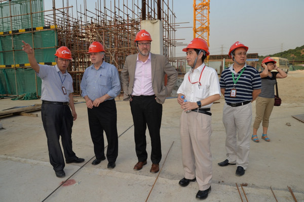 27日下午,James Yeck教授和Ferenc Mezei教授访问了位于东莞的散裂中子源(CSNS)。东莞分部主任陈元柏,CSNS常务副经理马力,加速器技术部主任傅世年等参与了接待。两位教授分别介绍了ESS情况,马力介绍了CSNS工程的最新进展。双方就加速器、靶站和谱仪等方面的技术合作进行了深入的讨论。最后,两位教授参观了CSNS工程建设工地,包括测试实验厅、环基坑和靶站等,翻天覆地的变化令他们感到十分震撼。