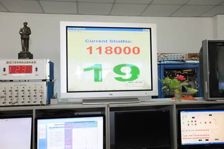 下午2点50分,科研人员陆续来到HT-7控制室,这其中包括十几位年逾花甲的老研究员,时隔多年,他们又再次共同坐在监视屏幕前,重温当年的工作场景。在李建刚所长主持下,老一辈科学家相继发言,讲述了与HT-7有关的往事:“装置的部件及有关设备陆续运到合肥,共46节火车车厢”;“装置不是简单的引进,我们根据研究和实验要求,将原装置的48个纵场线圈合并改造成24个,重新设计制作了新的真空室,增加了34个新的窗口”;“我个人申请的和合肥超环有关的基金就有8项”;“当年做实验的时候,我在控制室的椅子上练就了一闭眼就能睡着,一放电就能醒的本事”……老一辈等离子体所人坚韧不拔的创业故事感染了现场所有的人员,他们希望年轻人能够继承老一辈的优良传统,发扬大科学团队精神,锐意进取,开创我所聚变研究事业新局面。当高大明研究员按下操控按钮发出第118000炮的指令后,在场所有人员陪同合肥超环走完“职业生涯”的最后一程,共同回味20多年来的酸甜苦辣。