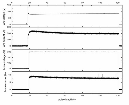 100秒长脉冲氢中性束引出实验数据图