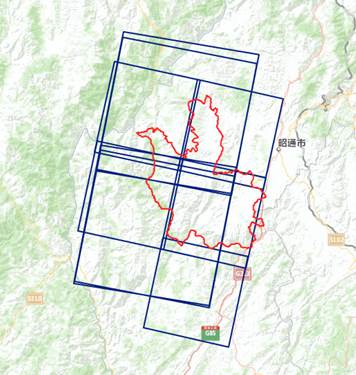 成功接收的资源三号和高分一号卫星灾区数据位置示意图