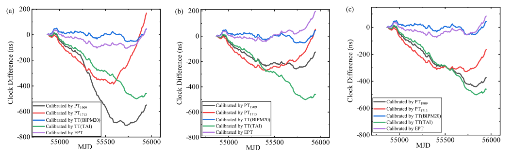 相关研究成果以《Methods for calibrating a cesium atomic clock using a pulsar time-scale》为题发表在天文学著名期刊Monthly Notices Royal Astronomical Society。
