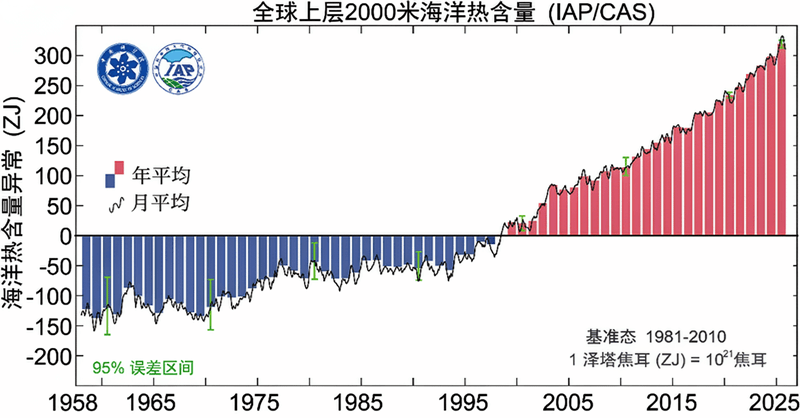 1月9日,中国科学院大气物理研究所、国家气象信息中心、国家卫星气象中心、国家海洋环境预报中心、自然资源部第二海洋研究所、中国科学院海洋研究所、中国科学院计算机网络信息中心、美国国家海洋和大气管理局、美国国家大气研究中心、法国墨卡托海洋国际研究所、意大利国家研究委员会海洋科学研究所等全球31个研究单位的55位科学家组成的国际研究团队,在《ADVANCES IN ATMOSPHERIC SCIENCES》(AAS)发布了2025年全球海温变化的研究报告。报告表明,2025年全球海洋上层2000米热含量(OHC)已连续9年刷新有观测记录以来的最高值;同时,全球平均海表温度(SST)位居历史第三高位,全球变暖趋势十分明确。