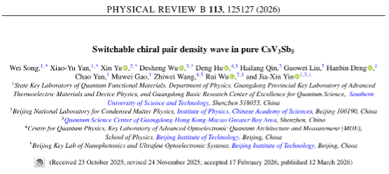 综合来看,此项研究不仅进一步确立了可切换手性PDW在AV3Sb5体系中的普适性,也表明重大科技基础设施在量子材料前沿研究中正发挥着越来越重要的作用。未来,依托SECUF,科研团队将继续探索包括笼目材料在内的非常规超导体系,通过深入研究其中的新奇量子态及其调控机制,有望为理解非常规超导的本质和发展新型量子器件提供坚实基础。