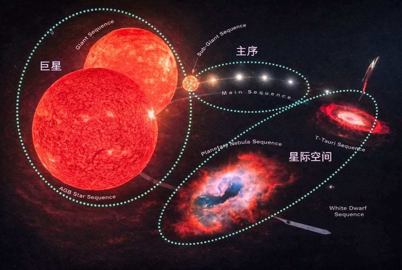 图2:锂元素的演化贯穿了恒星的各个生命阶段。